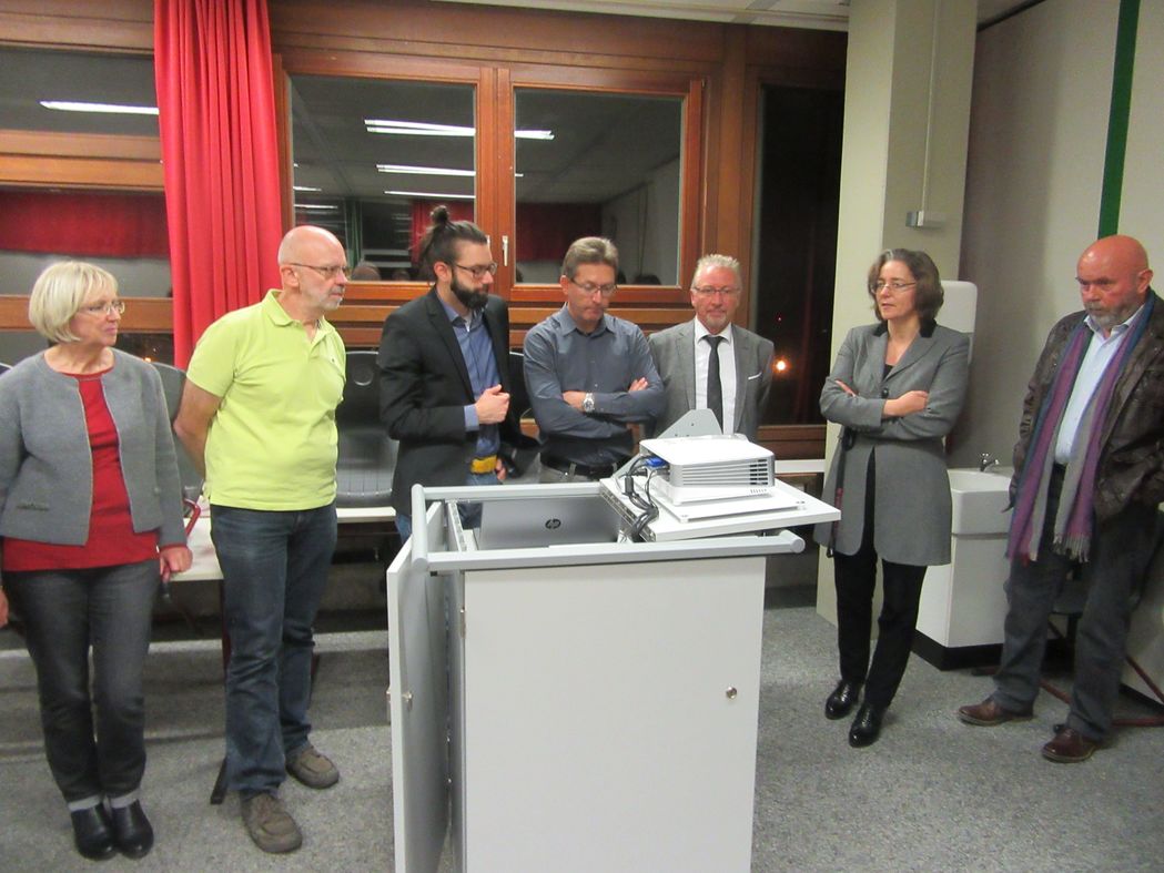 Frau Bott erläuterte uns zunächst auch die Anstrengungen für eine neue Medientechnik, damit das Fach Informatik überhaupt unterrichtet werden kann. Bei der anschließenden Führung zeigte und erläuterte uns Herr Shah die beiden Computerräume. Einen sparsamen Weg zur Ausstattung mit Laptop, Beamer und Co. hat sich das LMG mit Medienwägen einfallen lassen. Da es technisch kaum möglich war und ausrüstungsmäßig zu teuer gekommen wäre in jedes Klassenzimmer eine Präsentationseinheit zu installieren, ging man mit dem Medienwagen einen anderen Weg. In dem Medienwagen ist der Beamer, Laptop, Lautsprechereinheit und mehr, so installiert, dass es genügt, den Stecker in die Steckdose zu stecken und nicht mehr umständlich alle Geräte miteinander zu verbinden. So wurden elf Medieneinheiten beschafft die nun flexibel in den Klassenzimmern eingesetzt werden können.